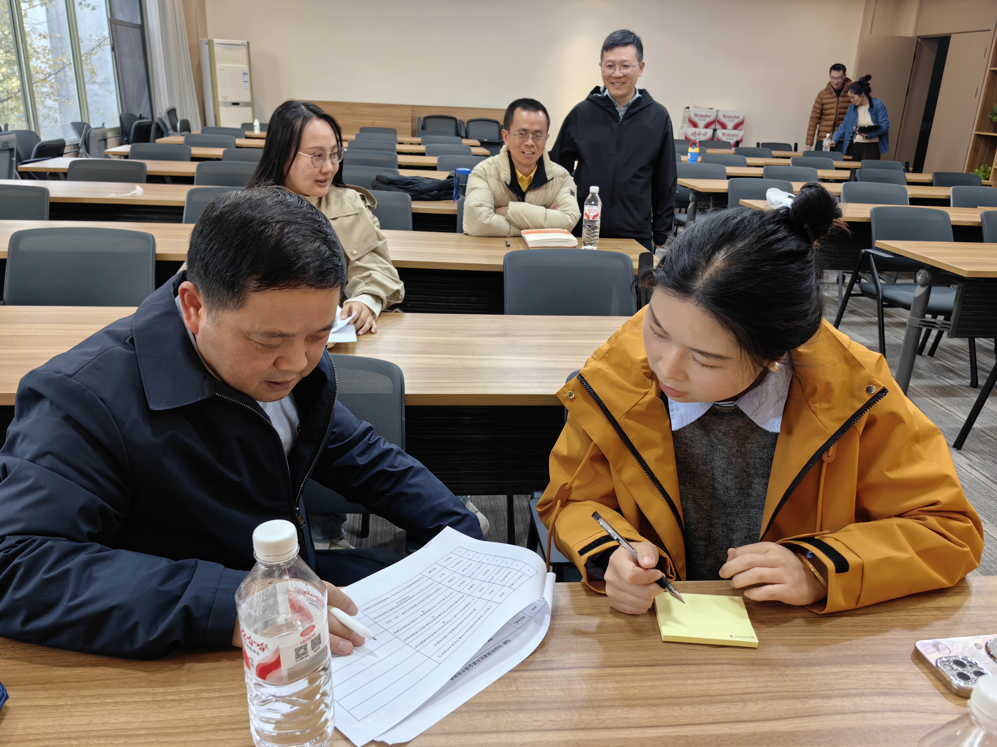 在点评指导阶段,杨俊教授逐一进行精准点评。他充分肯定了各课题在时代性、针对性和可行性方面的突出优势,认为选题紧扣国家战略需求与学科发展前沿,具有重要的理论价值与实践意义。同时,针对课题存在的研究边界界定、研究方法适配性、创新点提炼等共性问题,杨教授结合自身研究经验提出了系统性优化建议:一是建议进一步聚焦核心研究问题,避免内容过于宽泛,强化问题导向;二是在研究方法上可尝试跨学科融合,适当引入量化分析与案例实证相结合的研究路径;三是要突出研究特色,在理论应用或实践解决方案上形成差异化优势;四是需规范研究框架的逻辑层次,确保各部分内容衔接紧密、论证有力。在一对一互动交流环节,杨教授还针对各课题组提出的具体困惑进行了细致解答,为课题优化提供了可操作的改进方案。