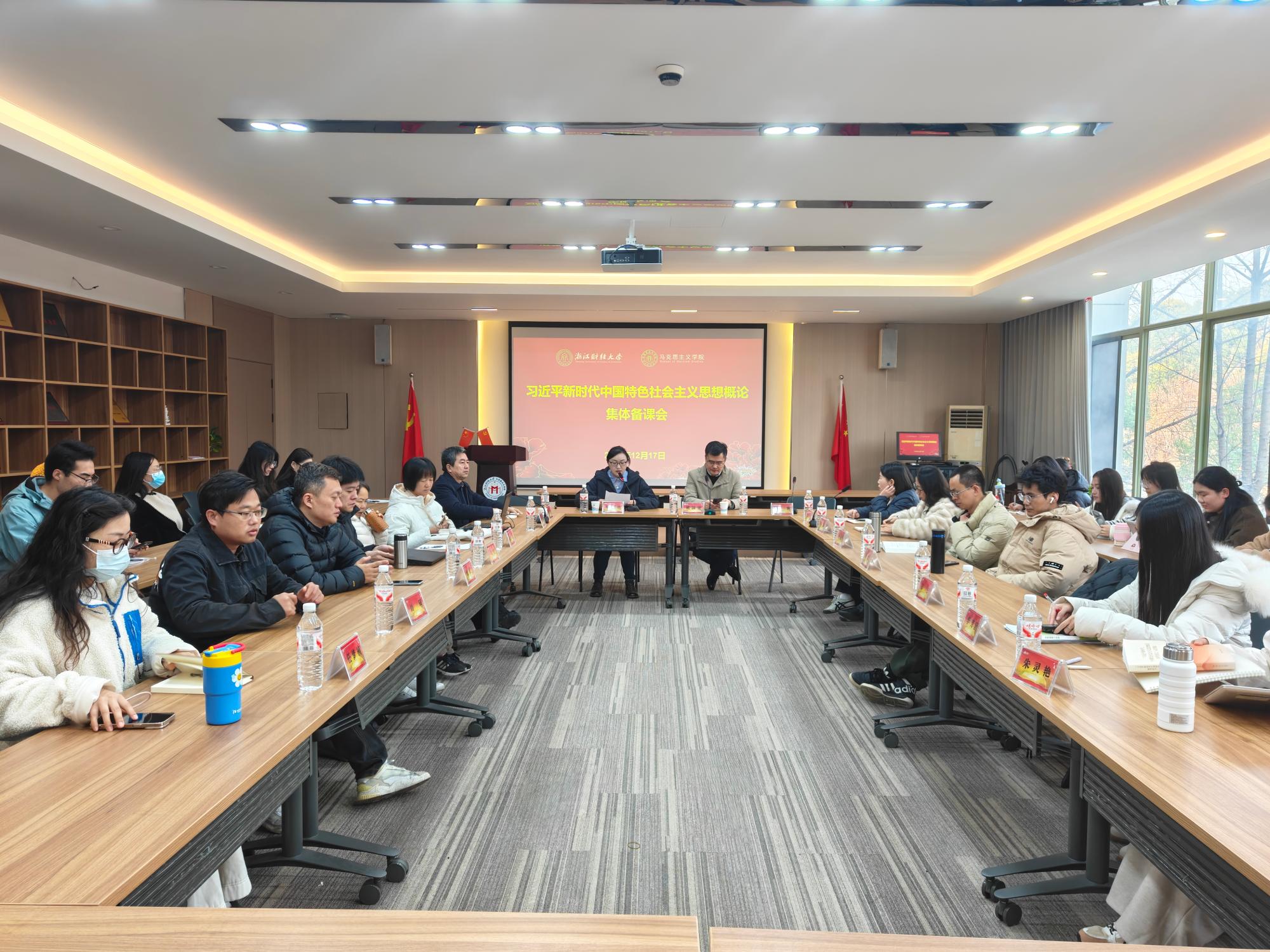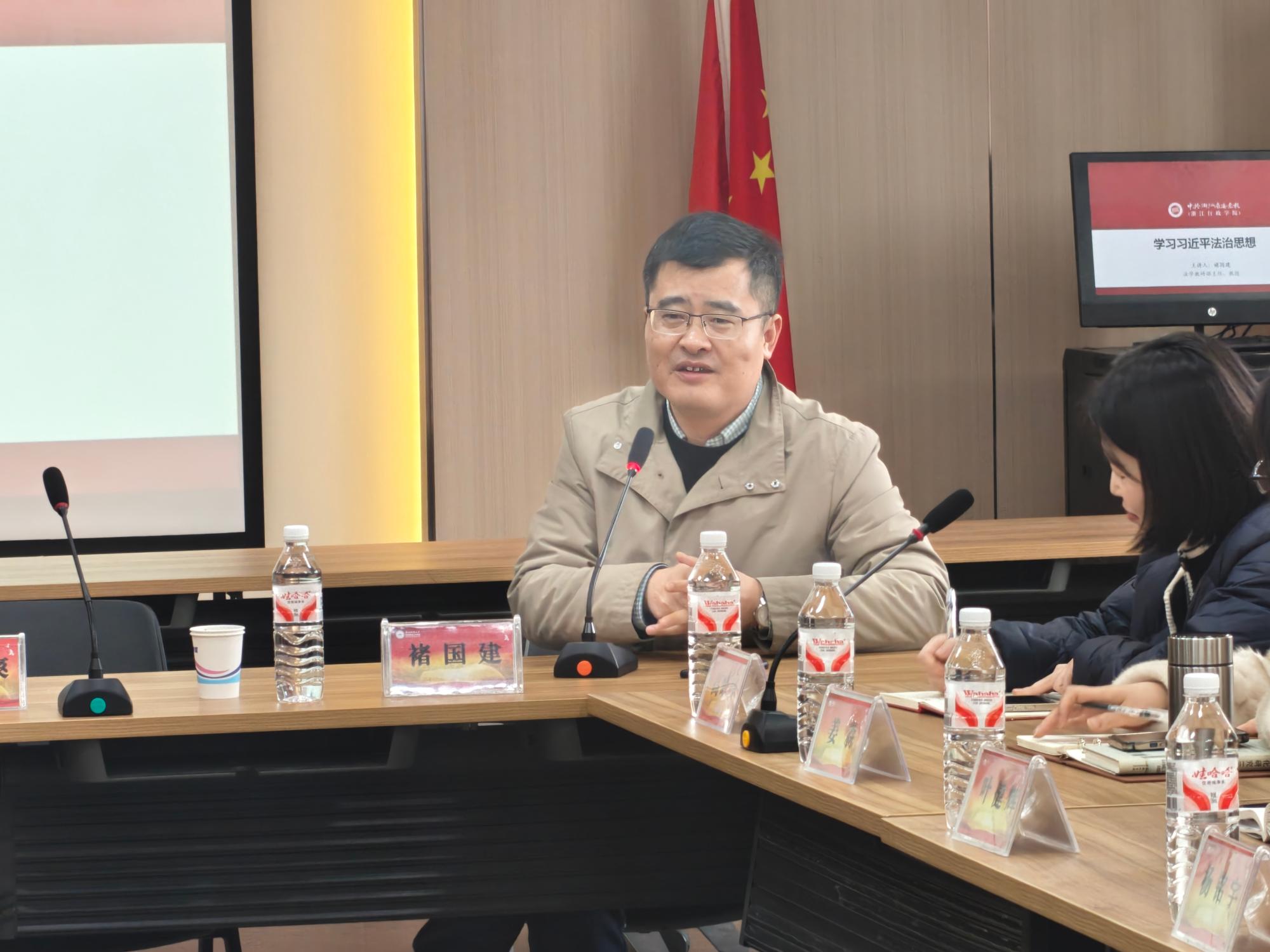 为深入推进集体备课走深走实,切实推动思政课教师教学能力提升,12月18日马克思主义学院特邀浙江省委党校法学教研部主任褚国建教授开展“习近平法治思想”专题集体备课会。本次备课会由副院长邢雁欣主持,“习近平新时代中国特色社会主义思想概论”“思想道德与法治”“形势与政策”课程组教师及相关专业研究生共同参与,现场研讨氛围浓厚,成果丰硕。