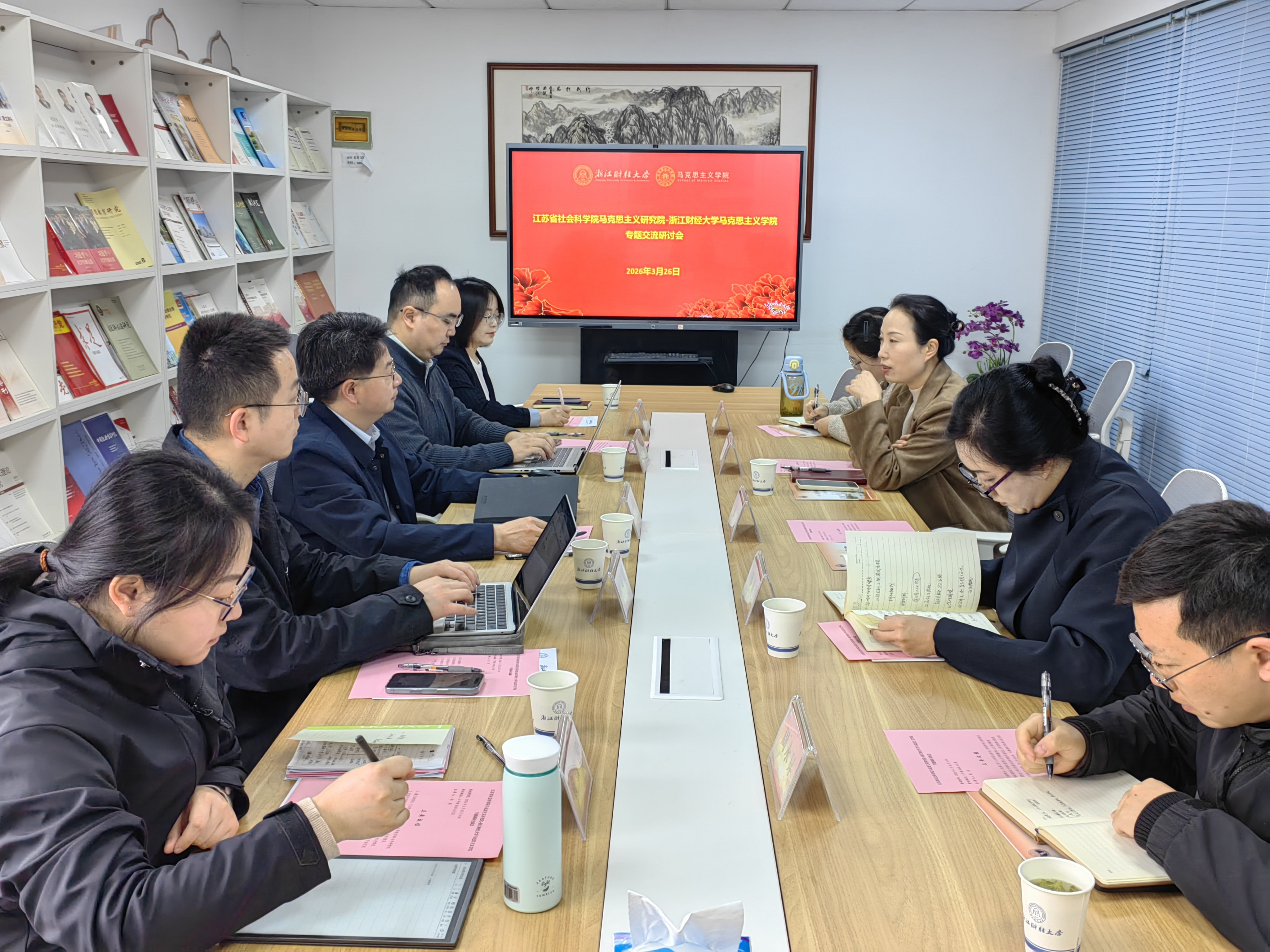 3月26日,江苏省社会科学院马克思主义研究院陈朋院长率队到访我院,就学科建设、科研创新等议题开展专题调研与交流。我院副院长(主持工作)潘旦主持交流会,副院长邢雁欣、专聘副职杨晓帆、周永昇等共同参会。