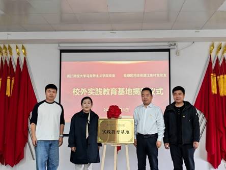 为深化校地协同、推动思政教育实践与乡村振兴深度融合, 4 月 1 日上午,我院与全国文明村——杭州市钱塘区河庄街道江东村,进行党建共建暨校外实践教育基地揭牌仪式。学院党委书记高燕及师生代表,钱塘区河庄街道办事处副主任文思聪,江东村党总支书记丁海江及两委班子代表共同参加活动。